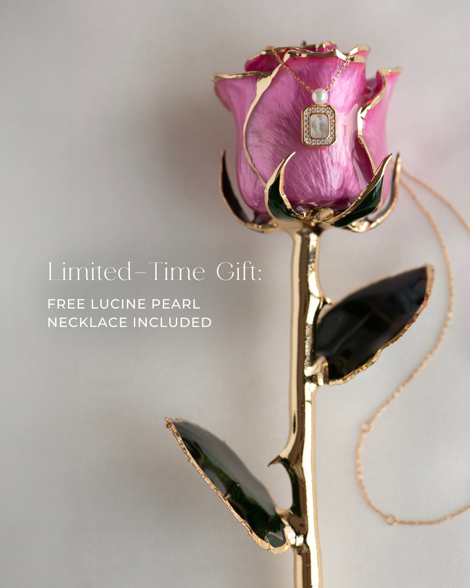 Every 24K Gold-Plated Rose comes with a complimentary Lucine Pearl Necklace (valued at $99 USD).