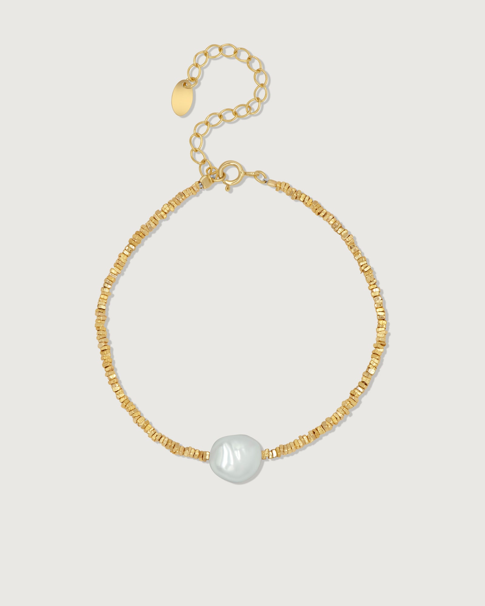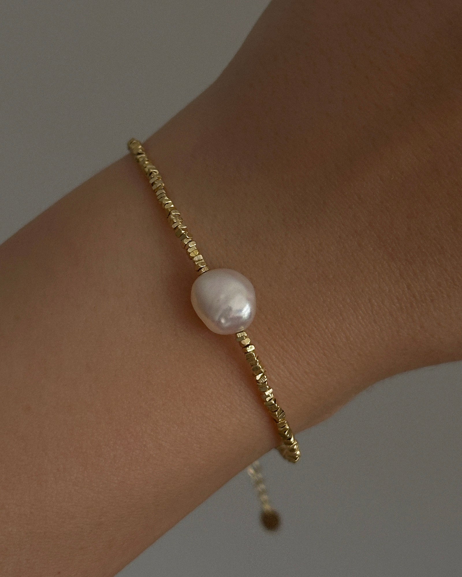 Celebrate your vibrant spirit with the enchanting Vivienne Bracelet. This luxurious piece captures the essence of joy and elegance, featuring a stunning array of delicate gold beads adorned with a radiant freshwater pearl. The unique design introduces a modern twist, making it a versatile accessory for any occasion. Pair with the Vivienne Necklace.