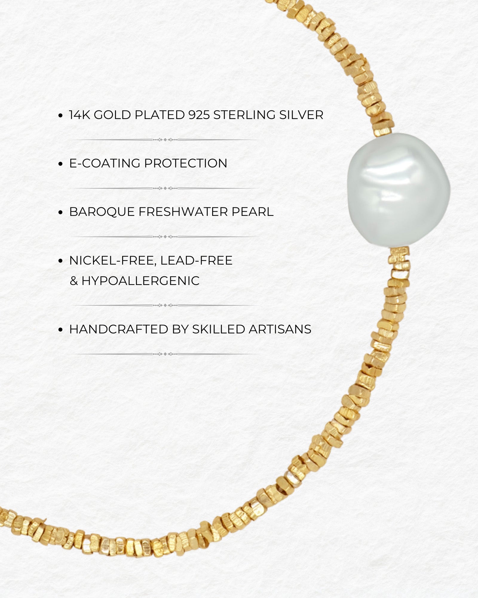 Material: 925 Sterling Silver with 14K Gold Plating, enhanced by an e-coating layer for lasting protection and durability