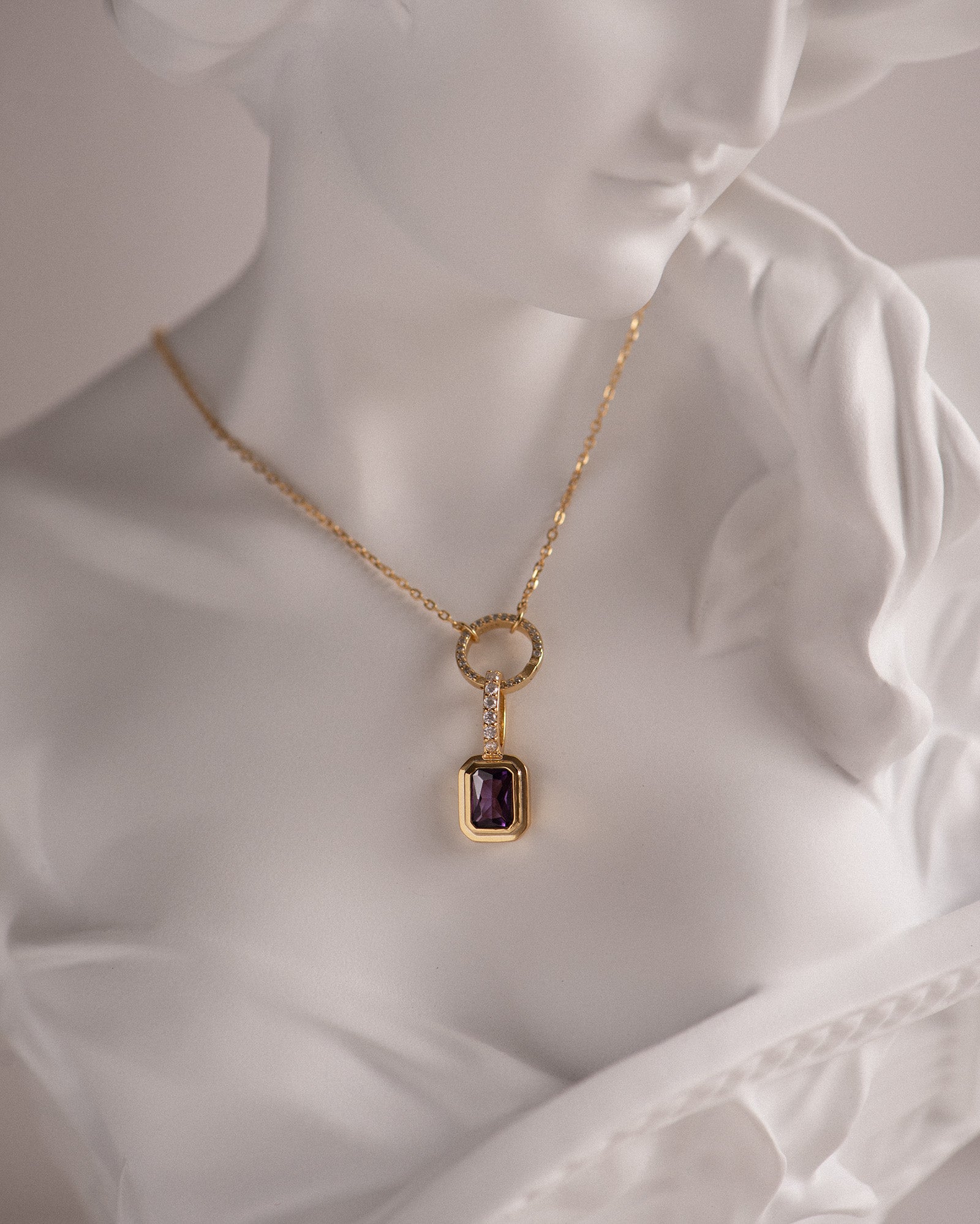 Calming and intuitive, February’s birthstone is tied to clarity, inner balance and a gentle strength that feels quietly empowering. This pendant channels that feeling through its deep amethyst-inspired hue, celebrating the calm confidence and emotional depth that define you - or someone you love.