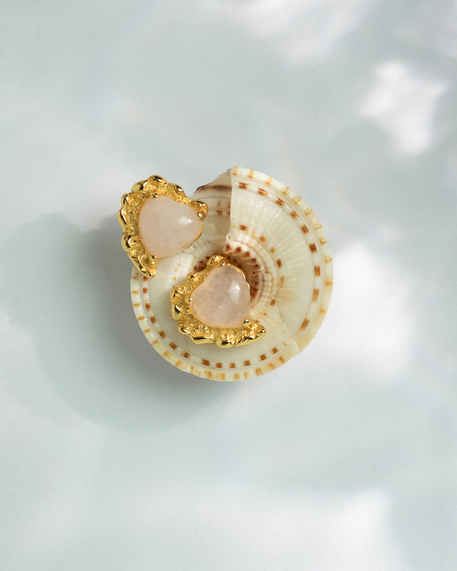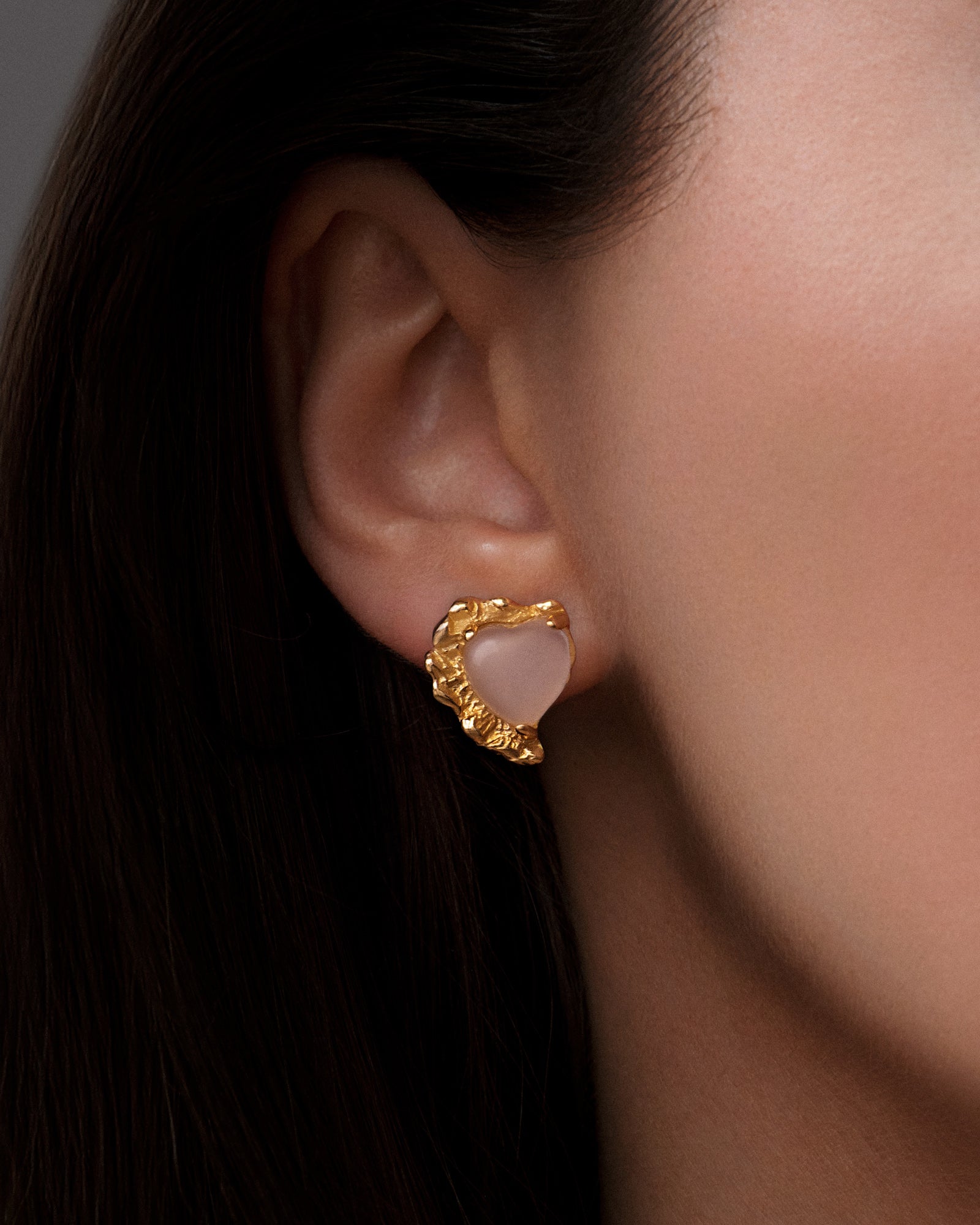 The Elysia Earrings exude elegance with heart-shaped agate stones nestled in textured crushed gold, inspired by realms of bliss and harmony. Each piece symbolises warmth and resilience, inviting you to wear your heart with grace and embrace your inner peace. Designed to transition seamlessly from day to night, these earrings perfectly complement the Elysia Necklace and Elysia Ring.