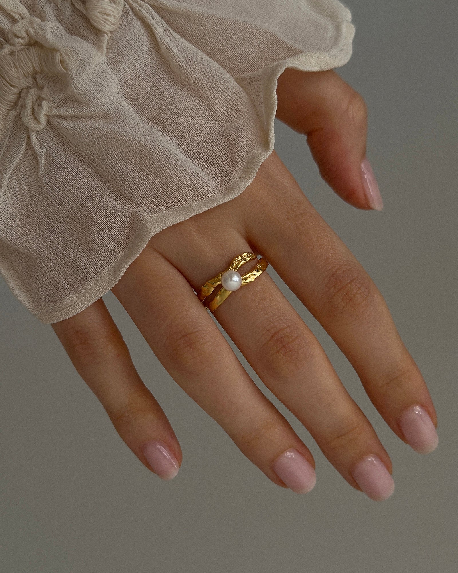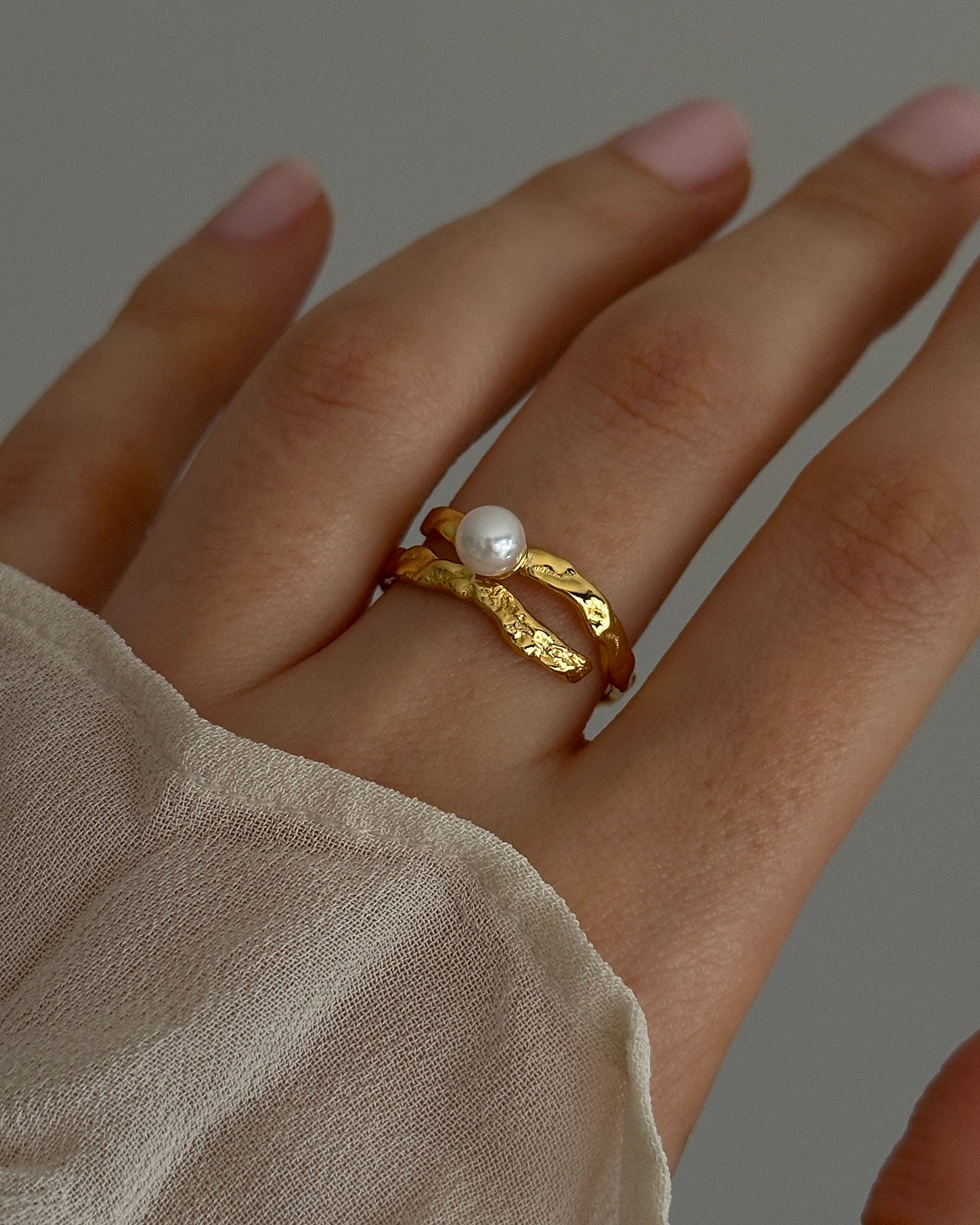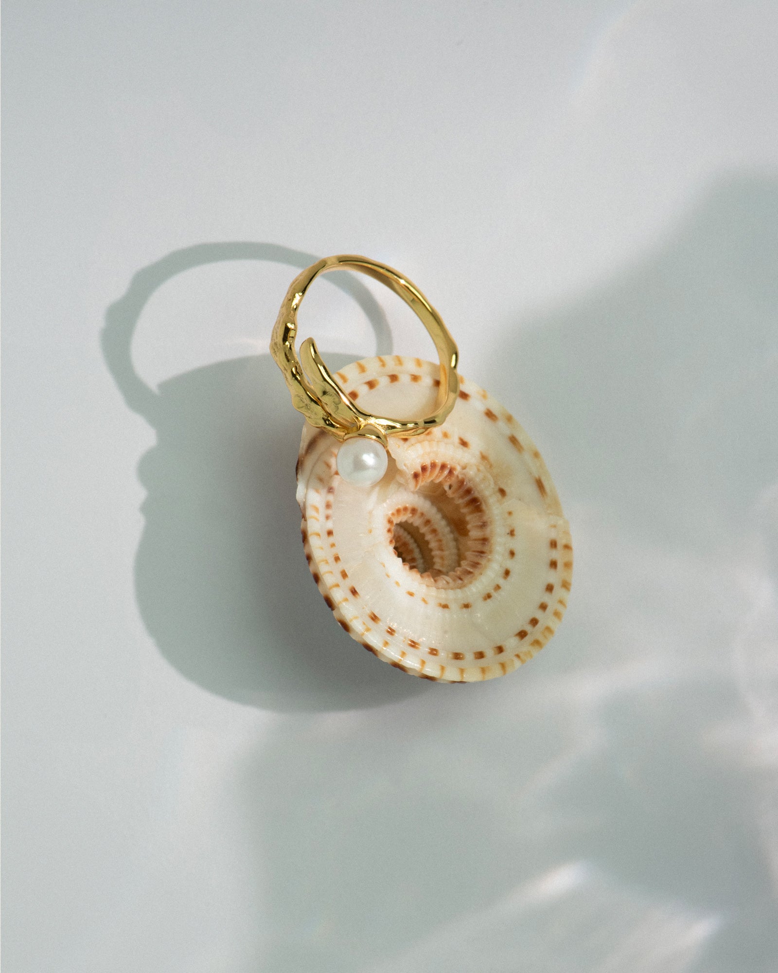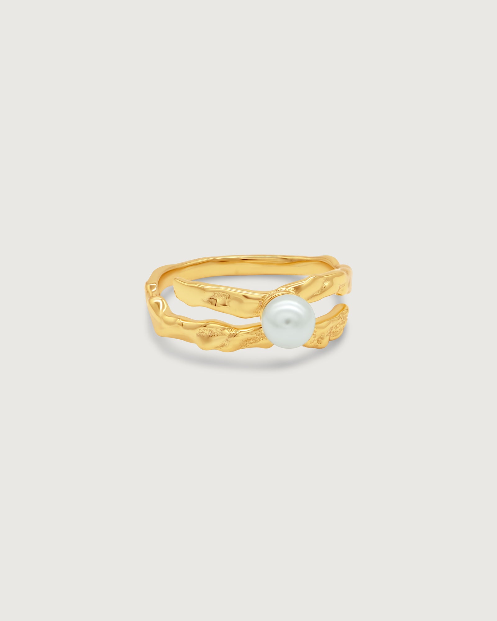 The Lula Ring whispers elegance with every curve. A sculptural blend of textured gold finish and a delicate freshwater pearl, this piece speaks of understated luxury. Its irregular shape adds a modern twist to classic design, making it the perfect statement for those who seek to embrace their individuality.