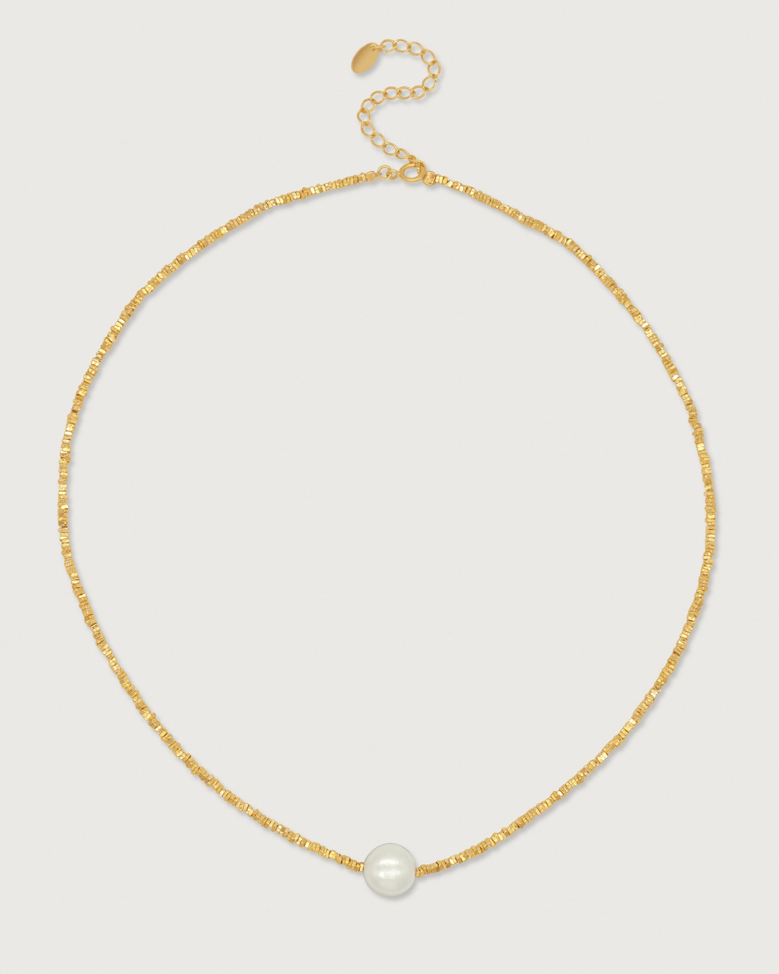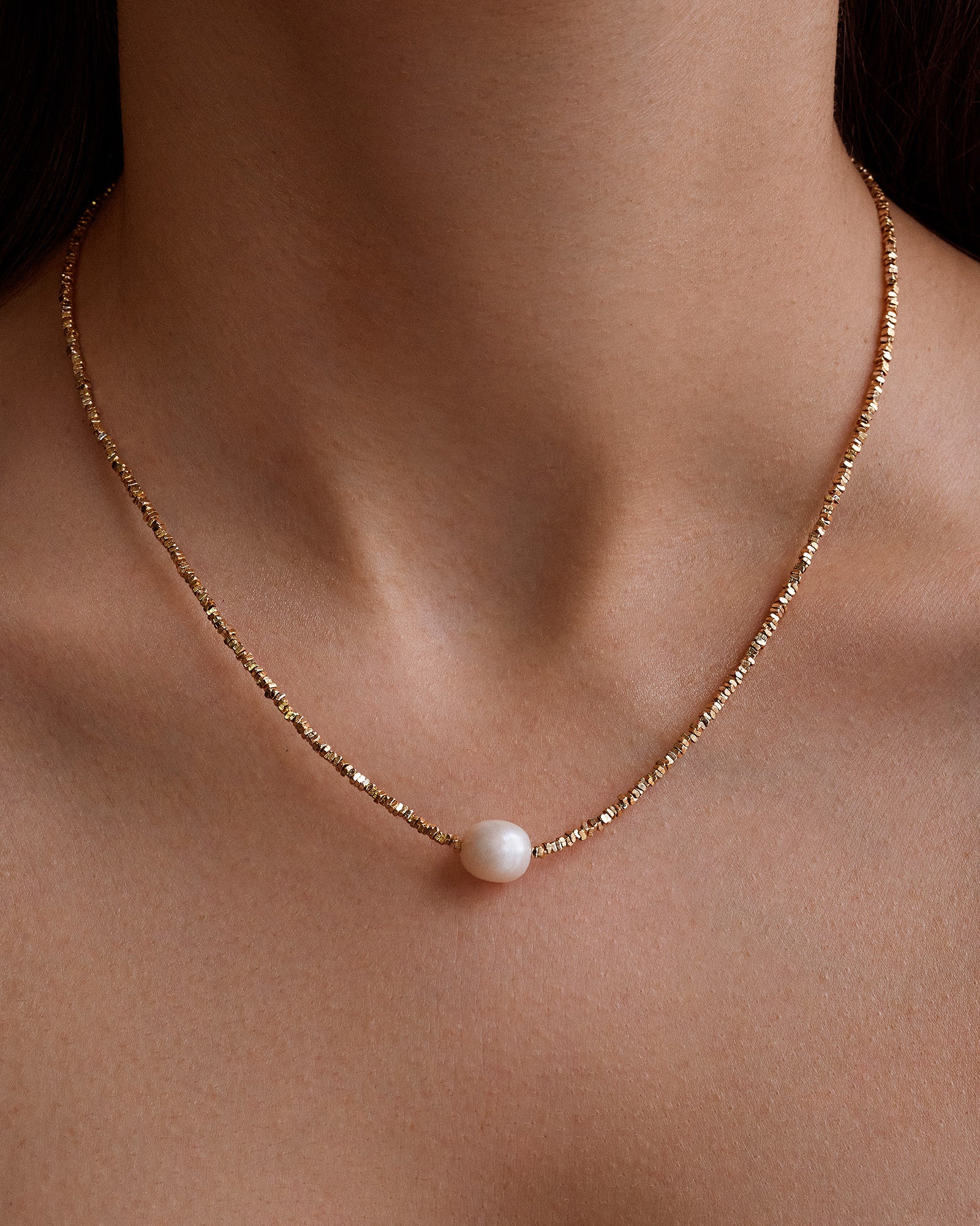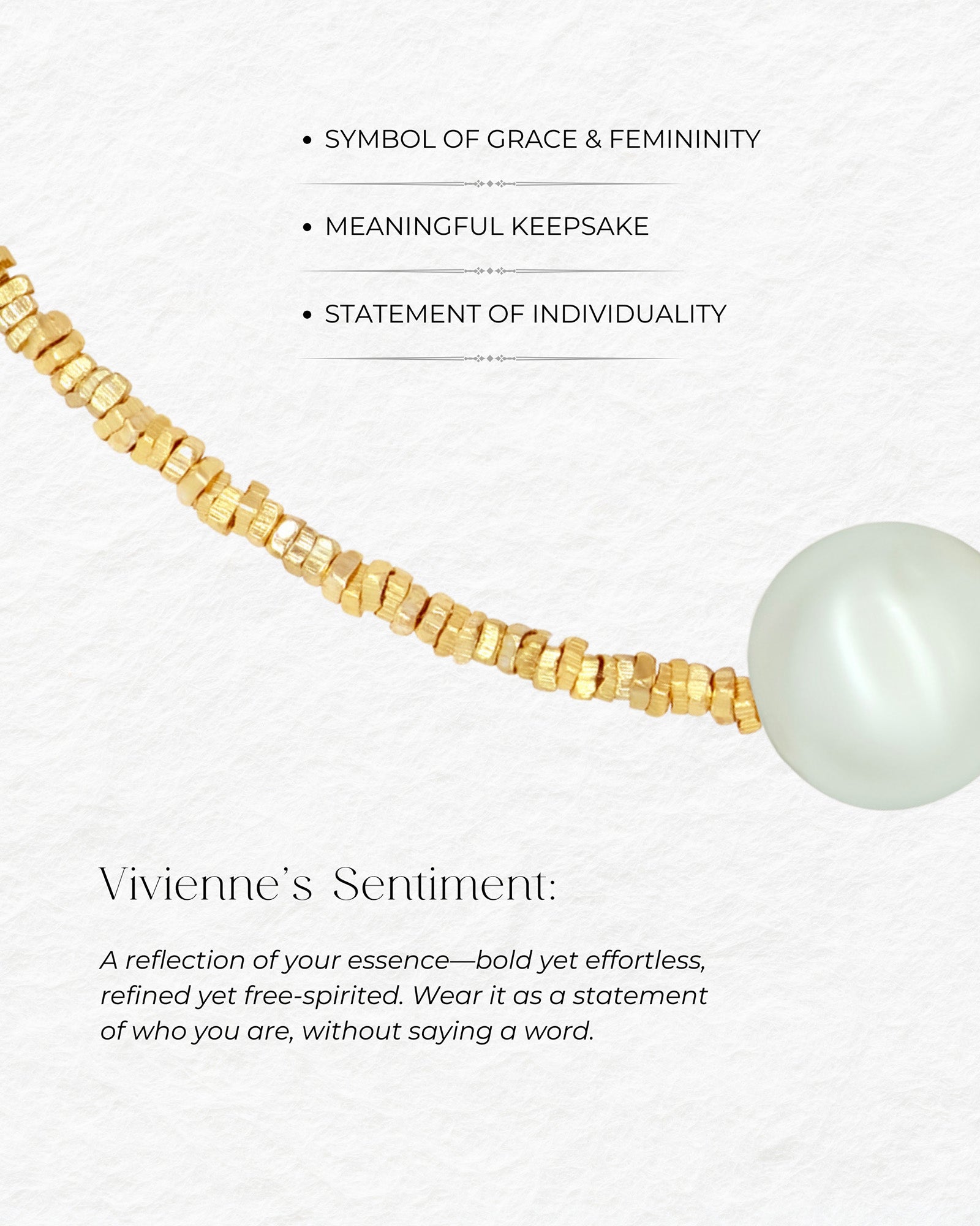 Celebrate your vibrant spirit with the enchanting Vivienne Necklace. This luxurious piece captures the essence of joy and elegance, featuring a stunning array of delicate gold beads adorned with a radiant freshwater pearl. The unique design introduces a modern twist, making it a versatile accessory for any occasion. Pair with the Vivienne Bracelet.