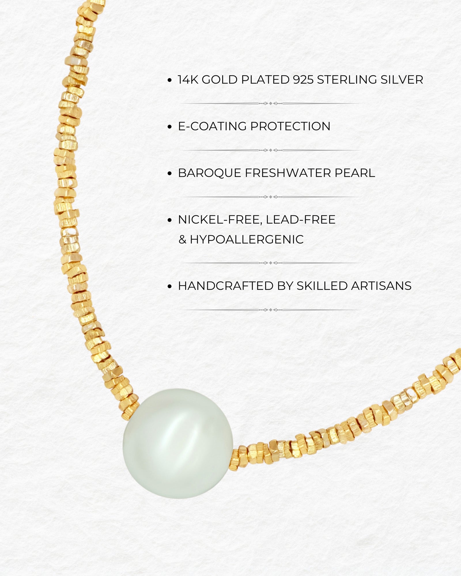 Material: 925 Sterling Silver with 14K Gold Plating, enhanced by an e-coating layer for lasting protection and durability
