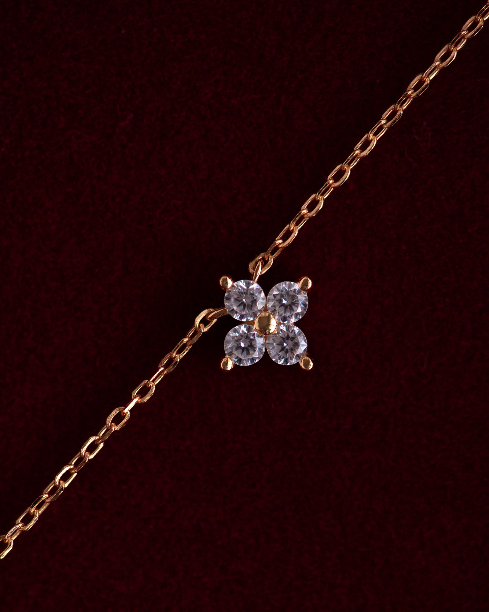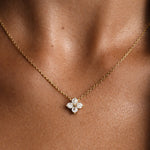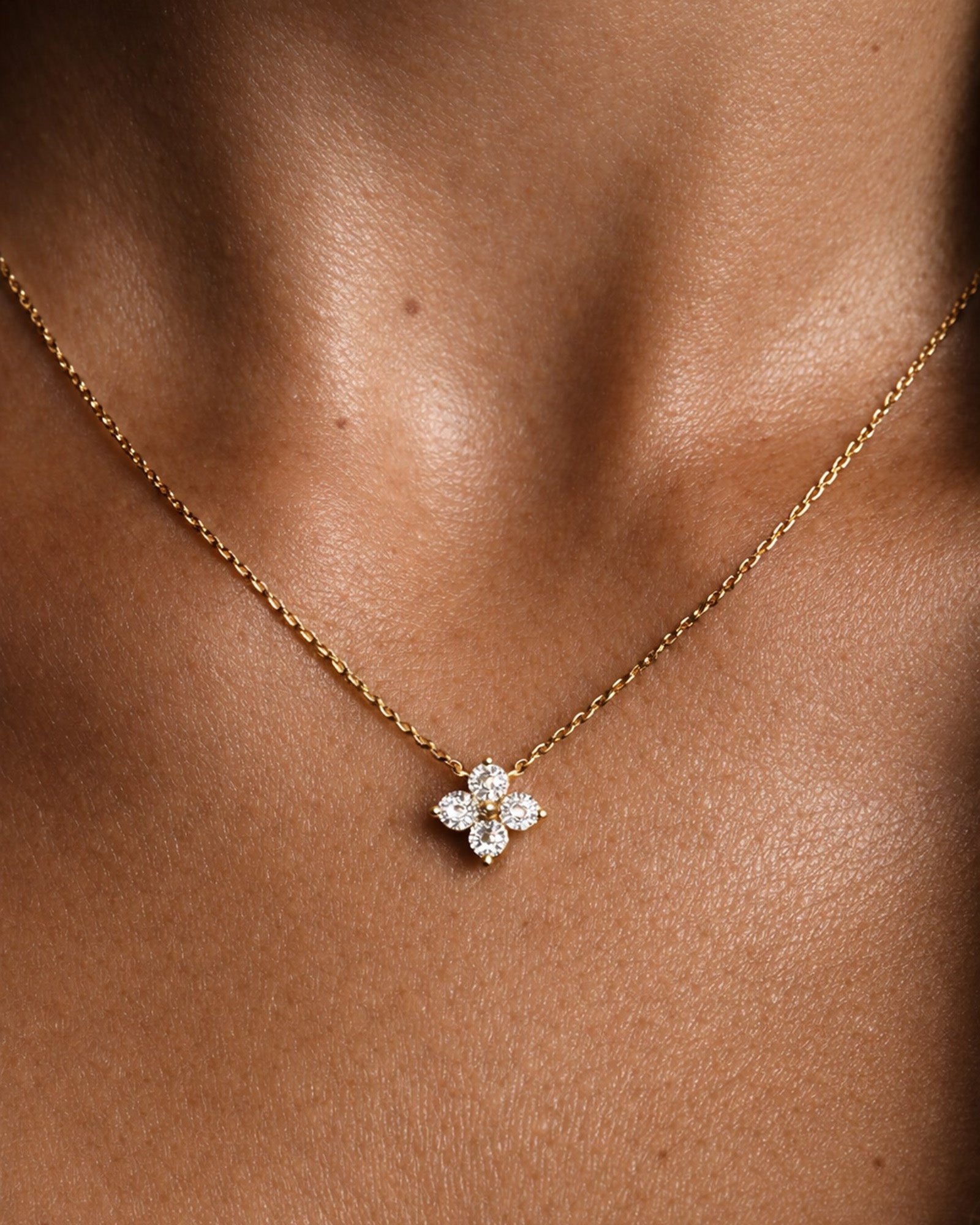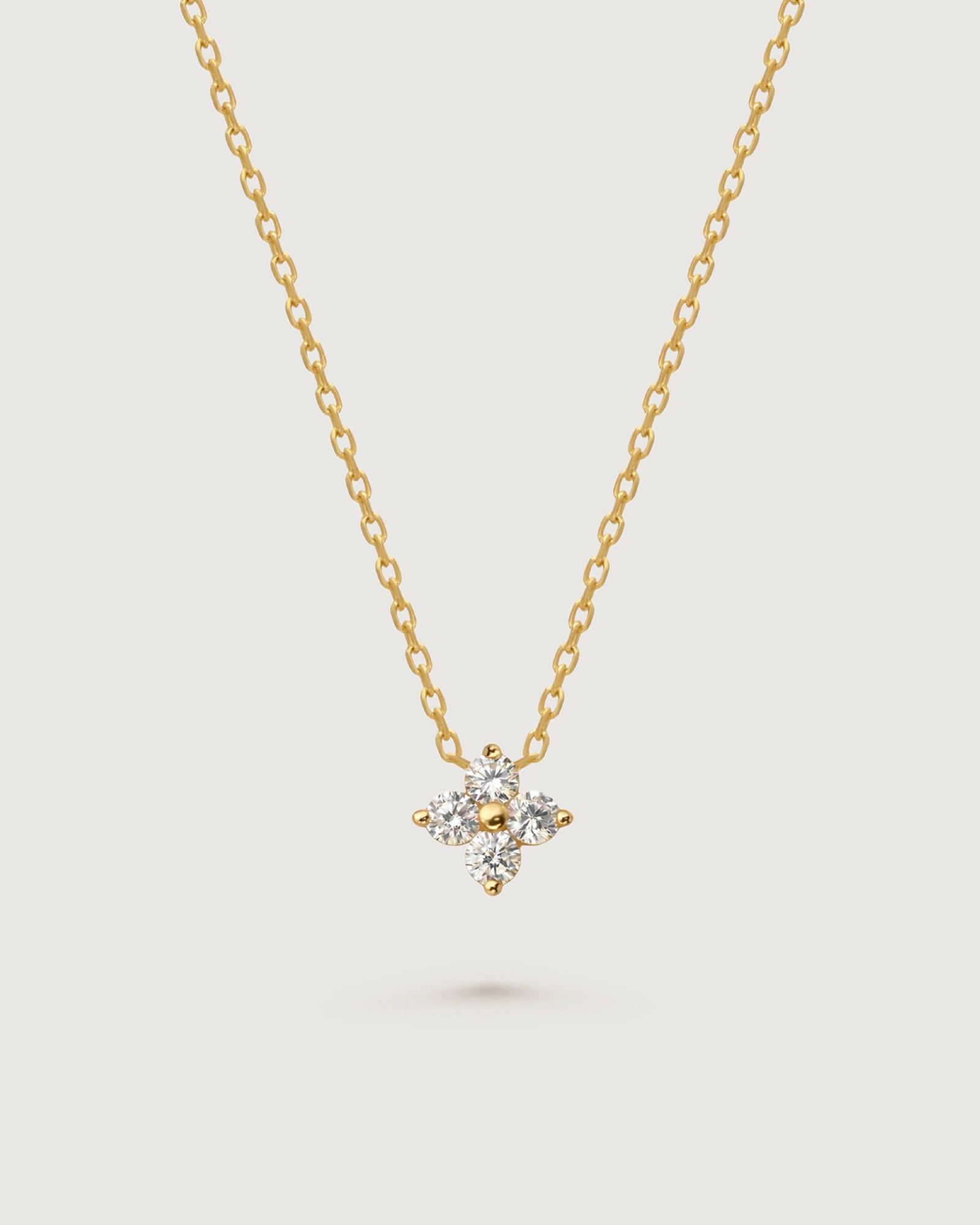 Delicate and luminous, the Allegra Clover Necklace celebrates luck, love and the beauty of meaningful moments. Its four-leaf clover silhouette, set with light-catching cubic zirconia, symbolises hope, fortune and the quiet magic found in everyday life.